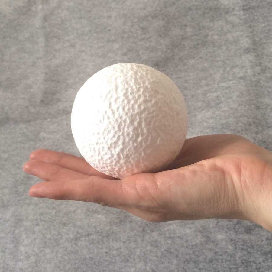 Шаг № 1. Из пенопласта вырезаются шары разной величины и формы. Будущие украшения елки могут быть как круглыми, так и овальными или многоугольными.