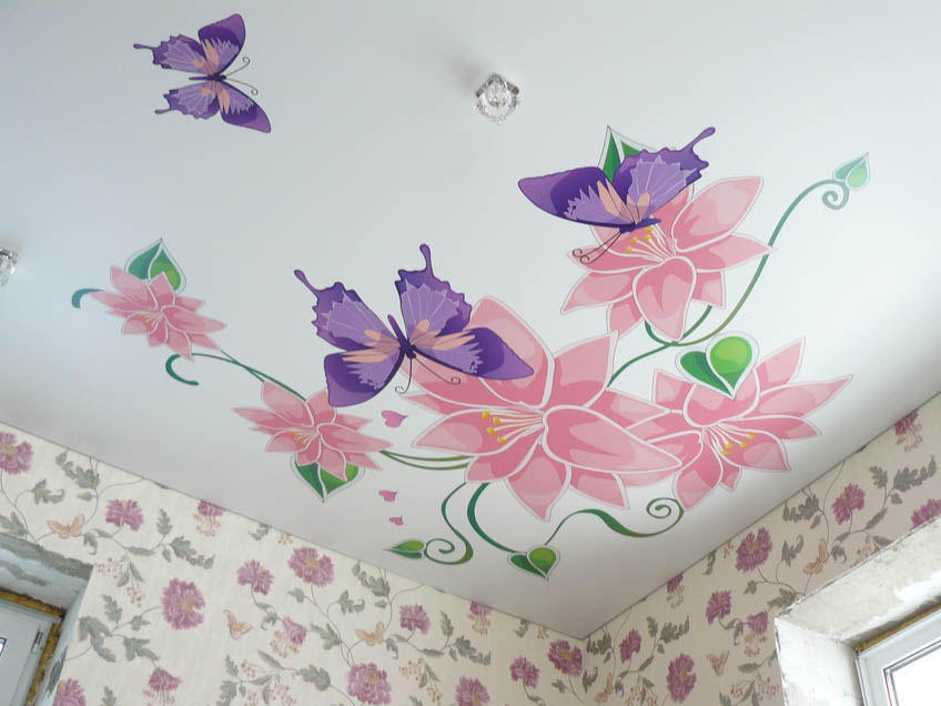 Для нанесения фотографии на поверхность натяжных потолков используют ультрафиолетовые краски. Способ подходит для ПВХ и тканевых полотен. Наносимый слой отличается высокой прочностью и стойкостью к износу. Состав красок безопасен для здоровья, стоек к повышенной влажности.