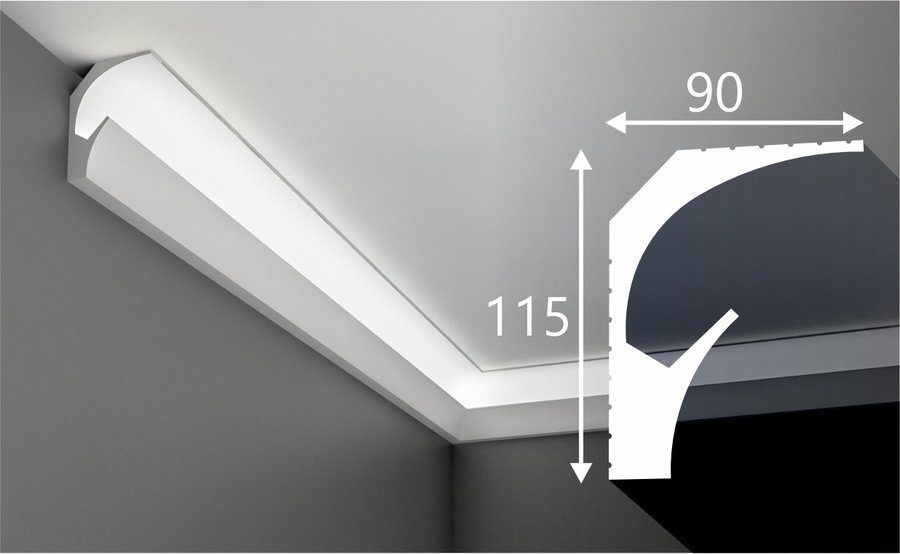 В контексте устройства светодиодной подсветки потолка нас интересуют следующие характеристики молдинга: