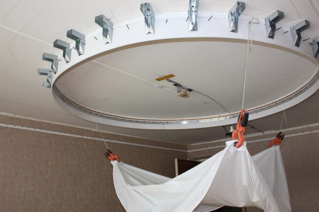 Отдельно стоит сказать про , так как их тип конструкции каркаса иной. Это даже не совсем каркас. Полотно крепится на профили, которые установлены по всему периметру стен помещения. Элемент каркаса предусматривается и под каждый точечный светильник, если в качестве освещения выбраны именно они.