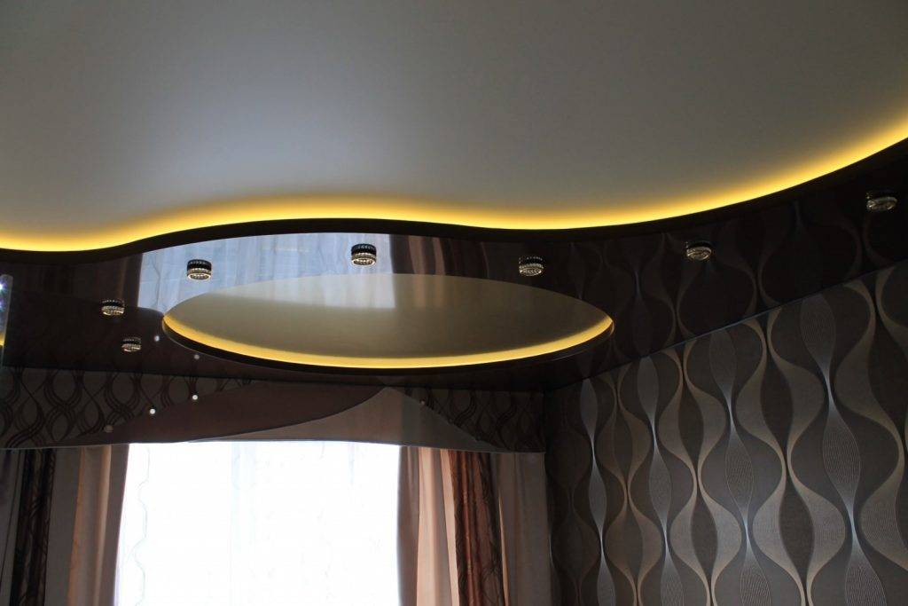 Натяжные потолки скрывают недостатки чернового потолочного основания, а применение светодиодной подсветки между уровнями потолка превращает его в уникальное дизайнерское творение.