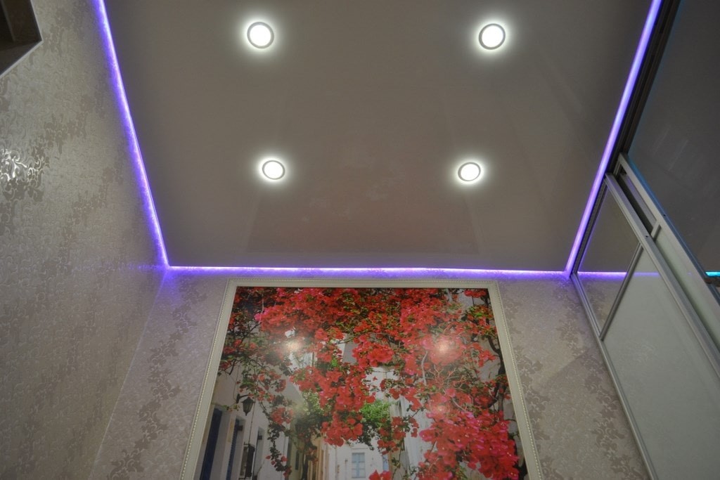 Второй вариант потребует более серьезных затрат и может использоваться только с матовыми видами пленок, так как глянец будет отражать все, что находится под ним. Для укладки диодов здесь используется гипсокартонная ниша, которую можно собрать даже после установки натягиваемого покрытия. Однако, лучше предусмотреть такое освещение заранее. Это позволит не только облегчить сборку, но и несколько снизит общую стоимость.