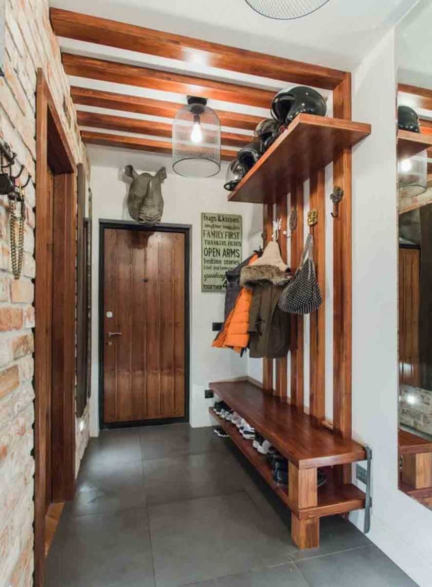 Интересным решением хозяев может стать желание создать свою неповторимую комнату и с помощью опытного дизайнера на входе вас встретит прихожая из дерева под старину.