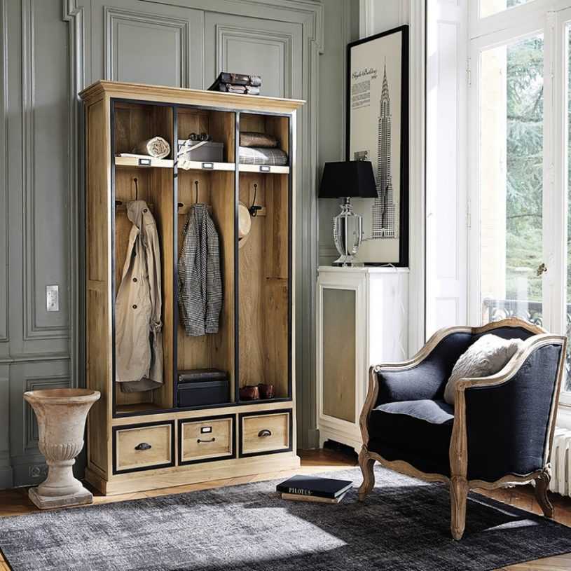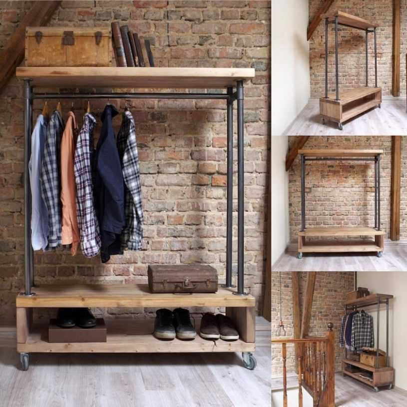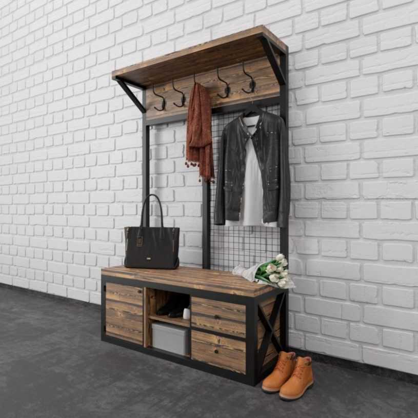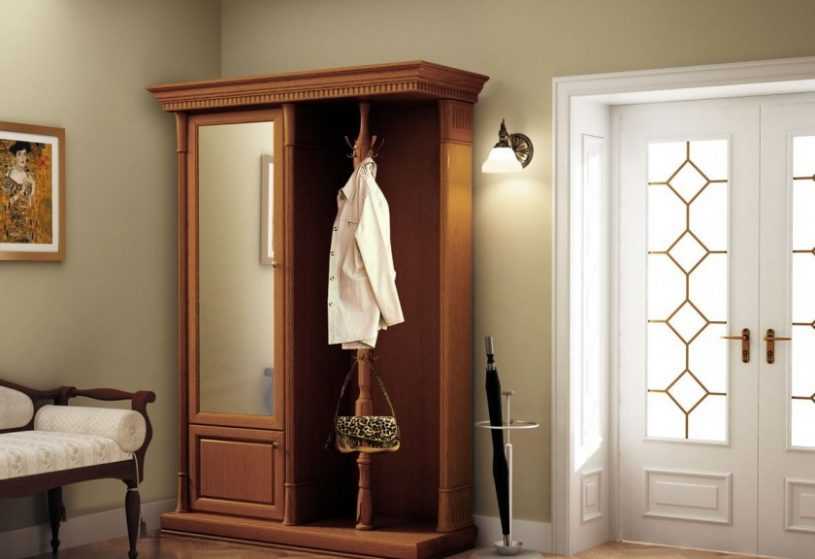 Открытые сооружения имеют ряд преимуществ: легко сразу находить на вешалке нужную одежду, а в тумбочке – пару обуви. Также они занимают минимум места, экономичны при покупке, ведь дерева на них требуется мало, и оттенок материала не будет играть особую роль (всё равно одежда будет сверху прикрывать).