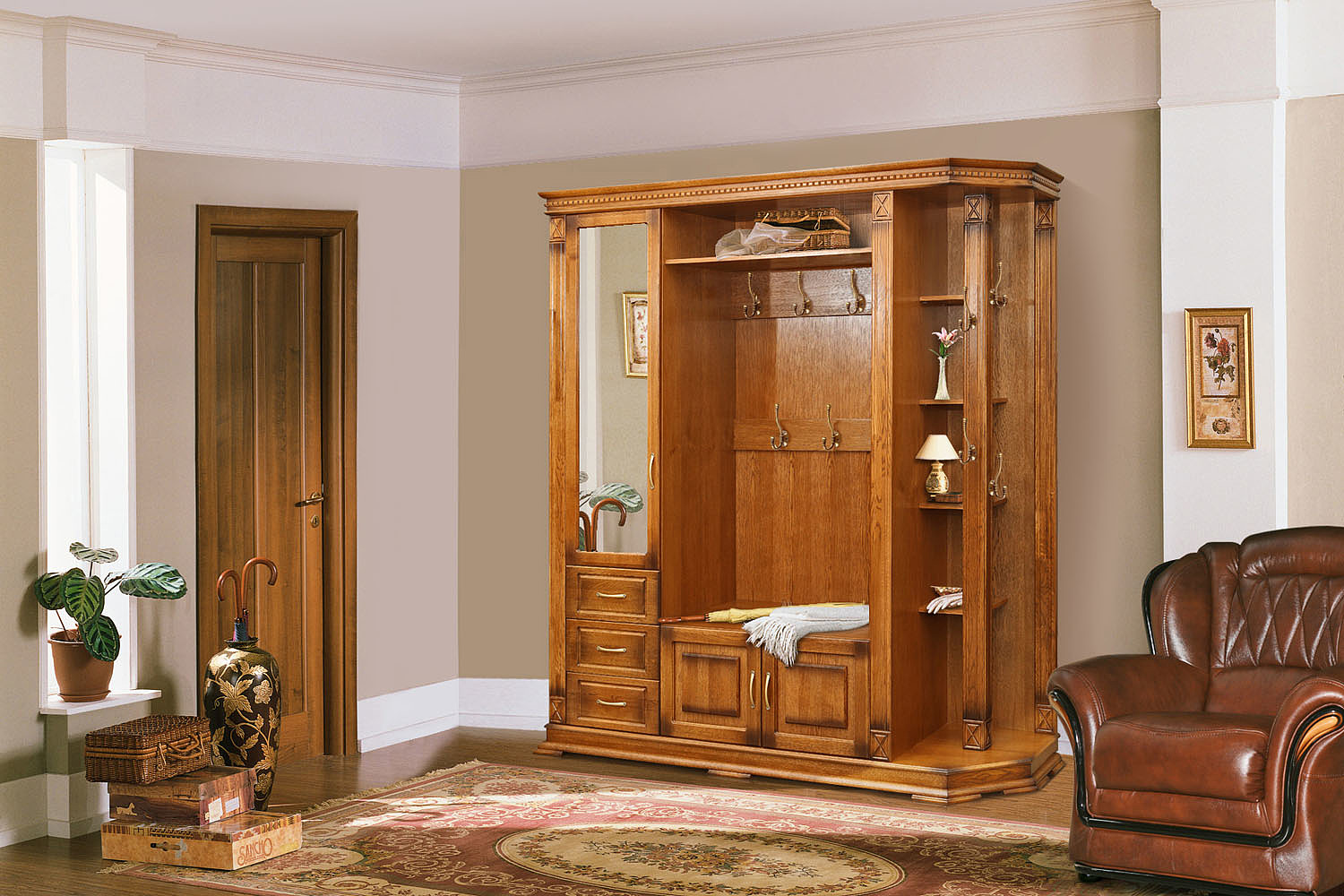 Прихожие в современных квартирах небольшие, поэтому стоит уделить внимание убранству этого помещения и меблировке. Коридор должен быть удобным и эргономичным, красивым. Конечно, мебель из массива дерева сложно назвать дешевой, но стоять она будет долго, не теряя своего презентабельного вида