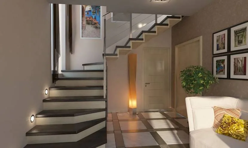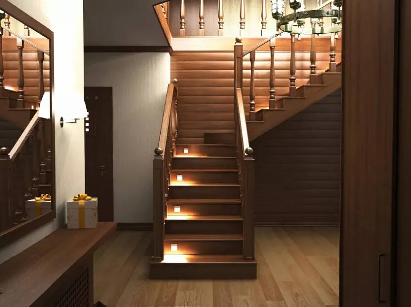 Как правило, прихожие тёмные, поскольку не имеют окон, а также примыкают к коридору сантехнических комнат. Для такого типа помещения развешивают освещение на разном уровне от пола: