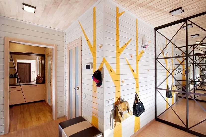 Добавит в обстановку чистоты и легкости и выгодно выделит другие элементы декора прихожей. Такое оформление стен, станет отличным вариантом для небольших или узких помещений.