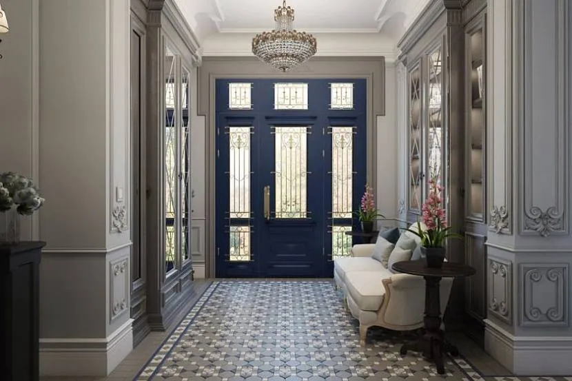 Загадочный, таинственный и интригующий синий, станет отличным решение для прихожих с большим количеством освещения.