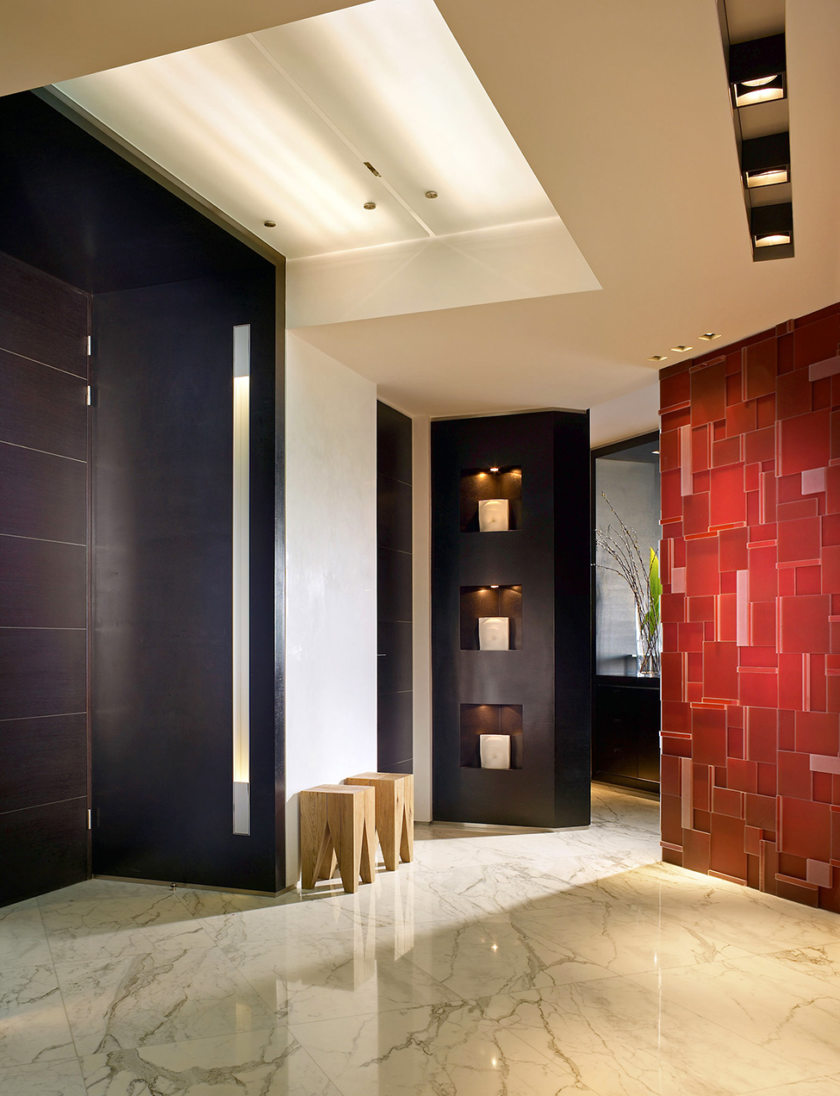 Вместе с этим именно сюда попадает большее число уличной пыли и грязи, поэтому отделочные материалы, используемые для декорирования пола и стен, и элементы украшения должны не притягивать к себе загрязнения и хорошо поддаваться уборке.