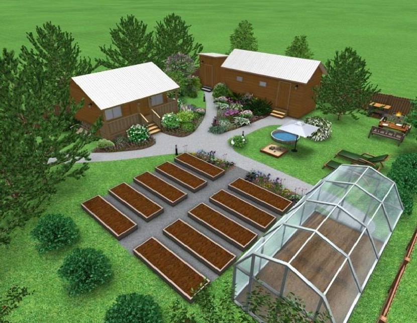 Чтобы определиться с конкретным местом постройки, лучше начертить схему участка в масштабе с указанием севера-юга, имеющихся сооружений, деревьев, кустов, компоста, забора, линии электропередач. Затем пунктиром отметить границы недозволенных для строительства зон и заштриховать их. Из того, что осталось можно выбирать место для дома. При этом нужно сразу учесть возможность пристройки, наличие гаража, летней кухни, кладовой, патио или бассейна.