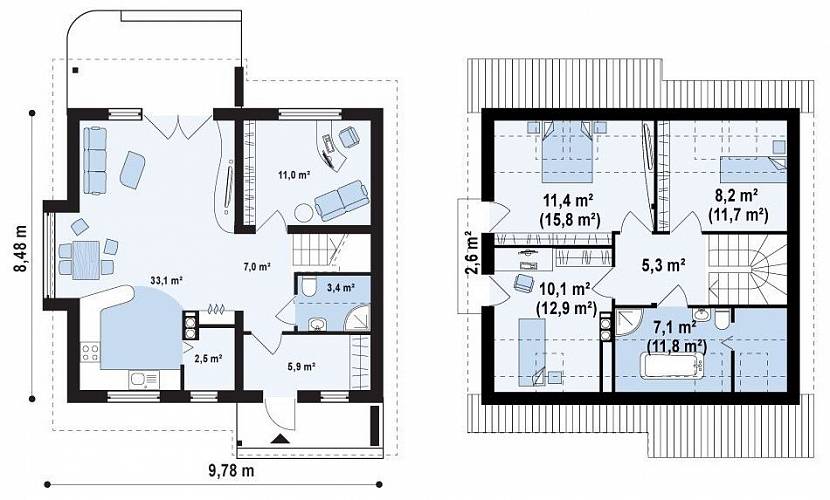 - Если вы хотите увеличить полезную площадь жилья, то выберите проект дома с мансардой 100 кв. м.