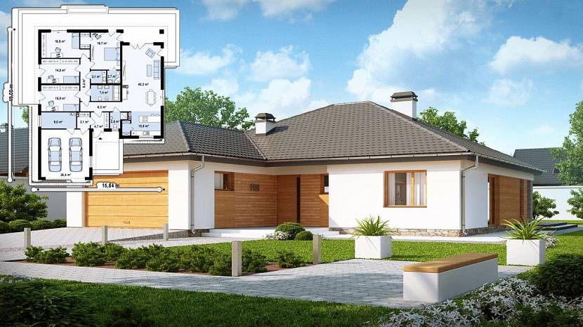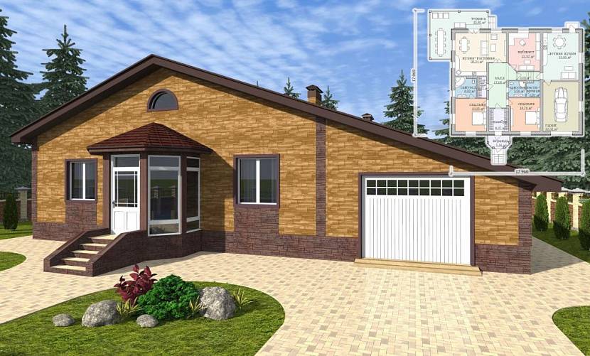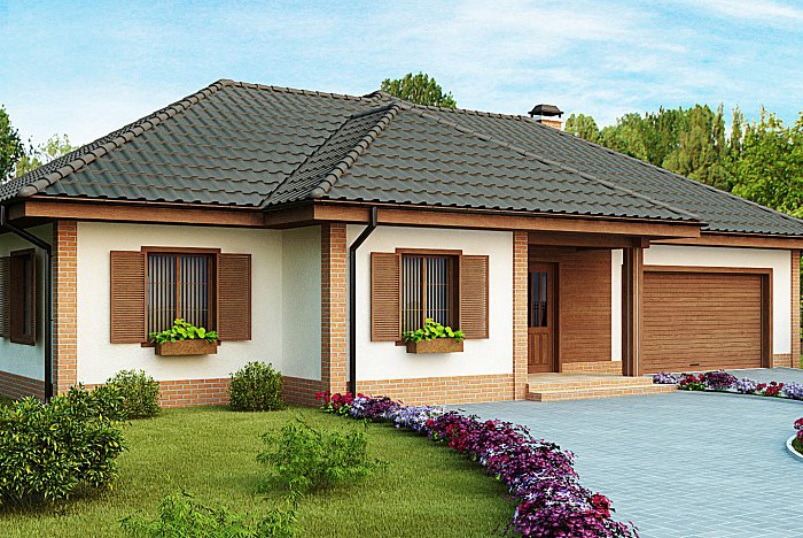 Одноэтажный дом площадью 100 кв. м. с гаражом