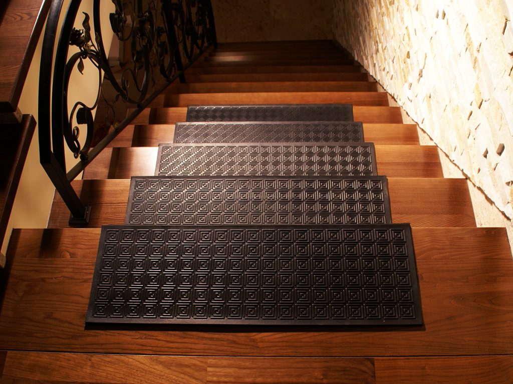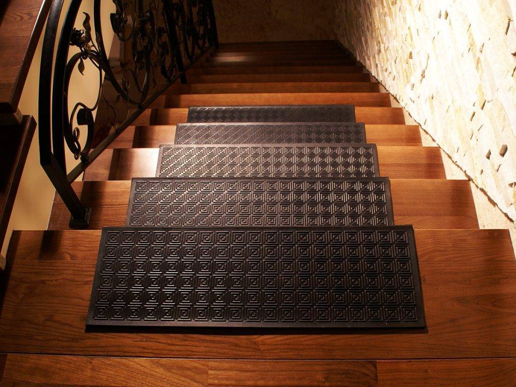 При отделке ступенек ковровыми накладками специалисты не рекомендуют использовать в качестве крепления скотч, клеевой способ укладки ковролина также весьма недолговечен. В таком случае подойдут резиновые изделия с противоскользящим эффектом.
