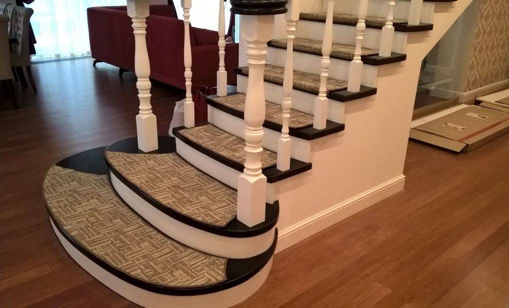 Выбирая сплошное ковровое покрытие, следует помнить, что его будет непросто уложить на поворотную лестницу. Для определения необходимого количества материала замеряют внешний край ступеней. Все размеры складываются, к длине замера каждой ступени прибавляется по 4 см.