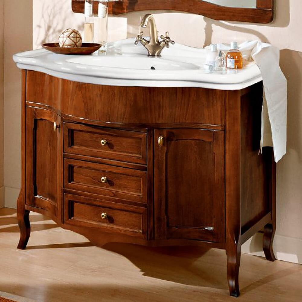 Другой моделью этого бренда является тумба с ящиками на доводчиках Арабеска 60. Изделие имеет размеры 59,3х44,6х80 см. Корпус и фасад выполнены из влагостойкого МДФ. Купить раковину на ножках с тумбой можно за 11,7 тыс. руб.