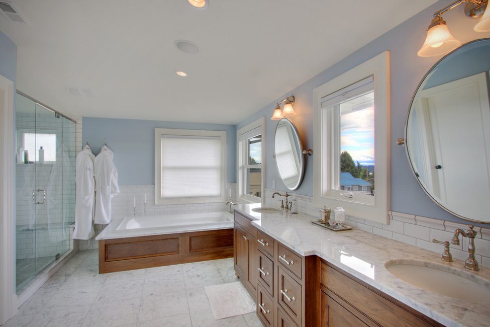 - продумайте, где должно быть расположение ванной, душевой кабины, раковины;