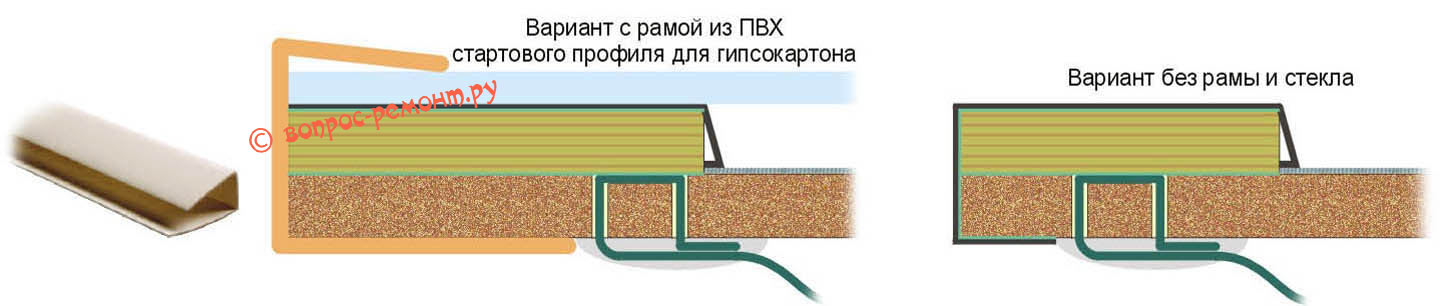 Напр., в офисе или интерьерах модернового клона (классический модерн, минимализм, хайтек и др.) фото можно обрамить предельно узенькой рамочкой из ПВХ стартового профиля для гипсокартона, слева на рис.: