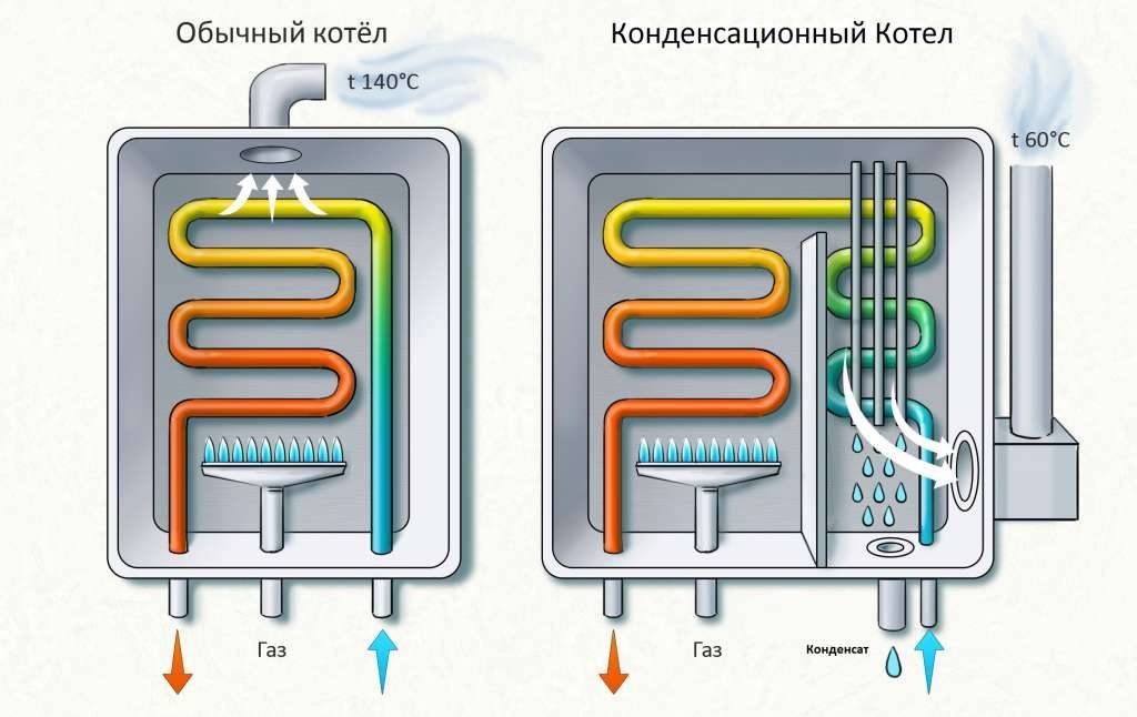 Конденсационный котел задействует потенциал водяного пара от продуктов сгорания газа. Оборудование максимально эффективно использует полученное тепло и снижает расход топлива на 15%.
