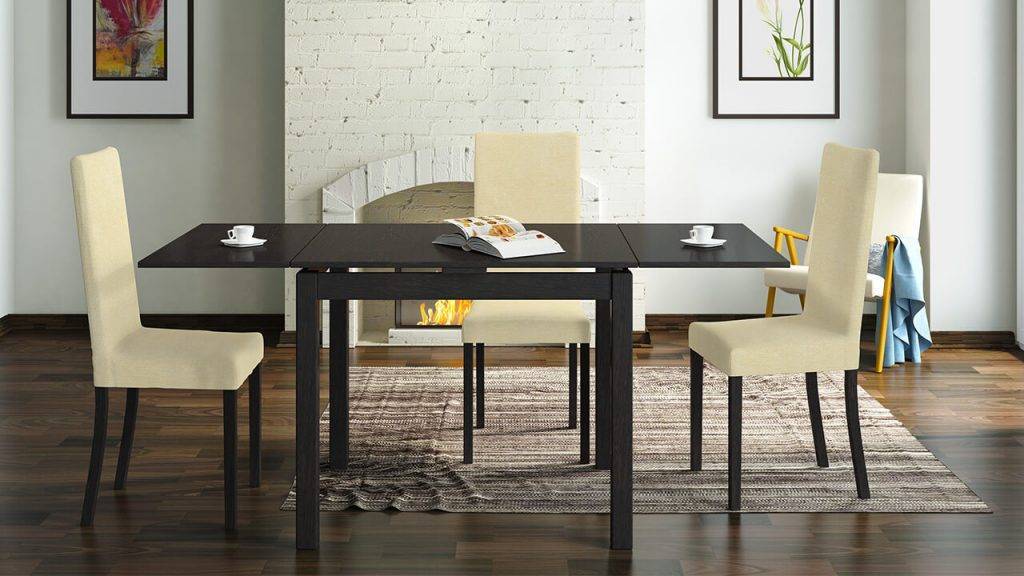 Если уж гости часто приезжают в квартиру, и вы не хотите их обидеть отсутствием места, лучше уж покупать раздвижные столы, которые в сложенном виде будут компактными.