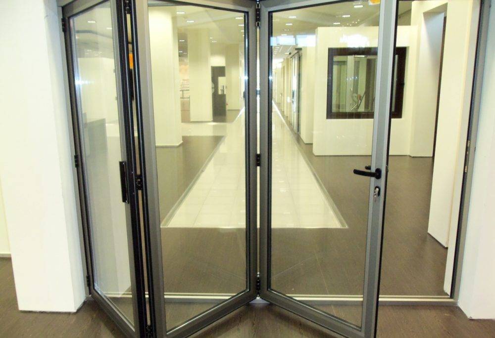 Параллельно-сдвижные или «панорамные двери». Их можно использовать для небольших проемов. Малый вес створок позволяет им легко и бесшумно скользить. Система позволяет осуществлять щелевое проветривание, причем и через глухую, и через открывающуюся створку. «Гармошка». Подобная конструкция подходит для остекления широких проемов. Полотна удобно складываются, открывая целиком весь проем. Для их работы не требуется пространства. Герметичность двери «гармошка» достаточно высока и сравнима с показателями обычного стеклопакета.