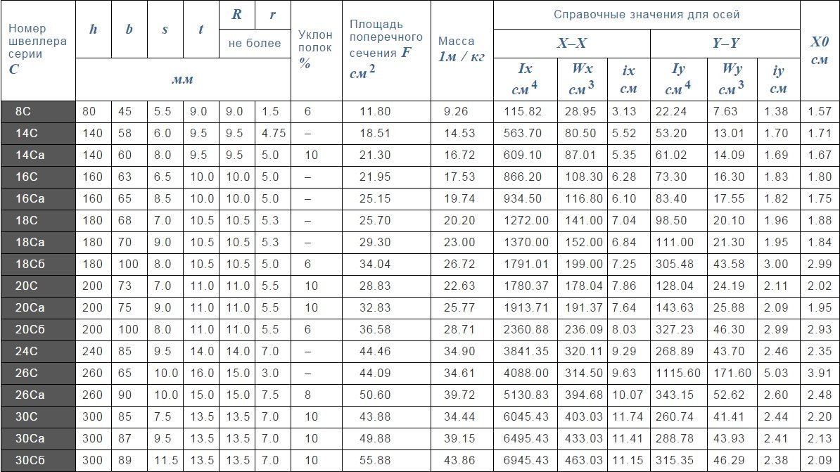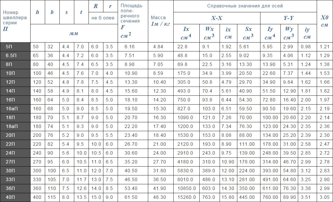Сортамент швеллеров – таблица размеров, маркировка по ГОСТ