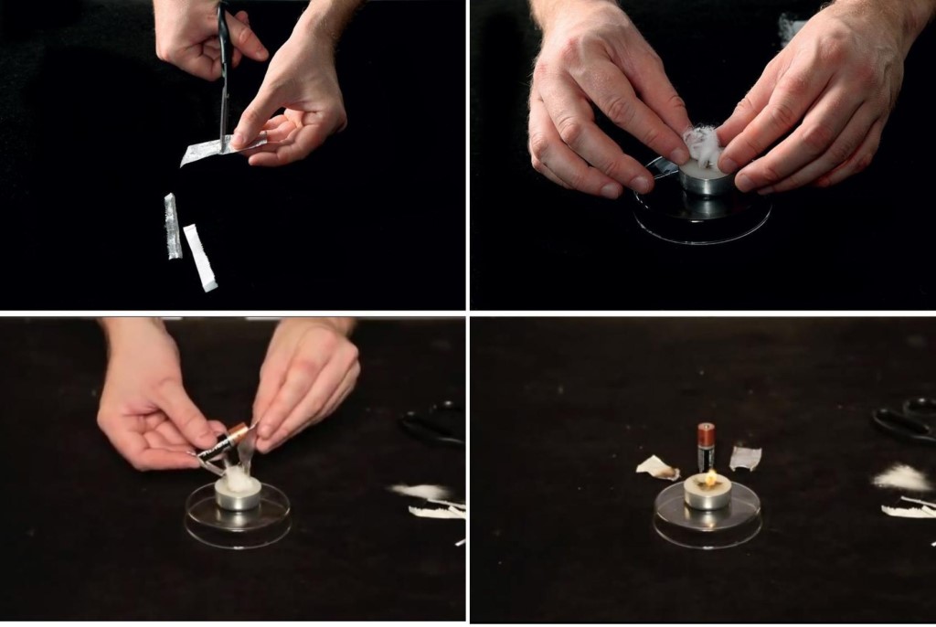 Таким образом, как разжечь костер с помощью батарейки теперь понятно.