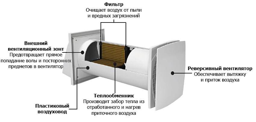 - минимальные затраты энергопотребления для работы приточного и вытяжного вентилятора;
