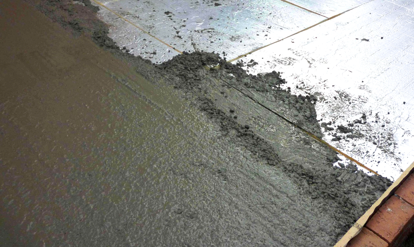Если у Вас нет возможности отшлифовать поверхность с помощью специальных электро инструментов, то в завершении укладки раствора, поверхность разравнивается простой щеткой. Этот способ не только помогает выдавить воздух, но и делает поверхность шероховатой. В конечном итоге на тротуаре не появится слишком скользких участков. Еще близко к теме, статья.
