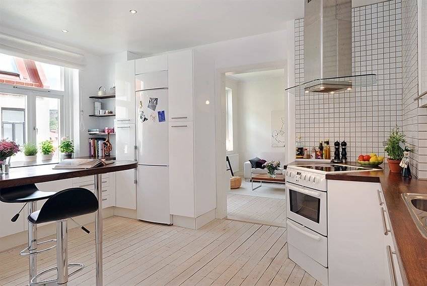 2.Попробуйте удалить перегородку или заменить стандартную стену на стену из стеклянных блоков или стекла. Вы также можете спроектировать остров или полуостров на его месте. Может быть, гостиная с кухней — это решение для вас?