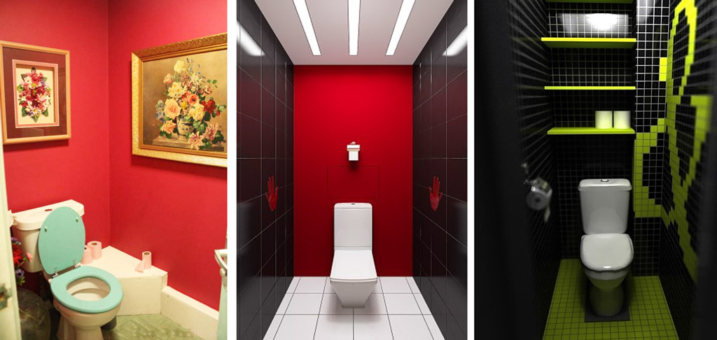 - При выборе материала необходимо помнить, что туалет загрязняется очень активными веществами, так что материалы не должны иметь больших пор, чтобы не впитывать в себя неприятные запахи, избавиться от которых будет довольно сложно.