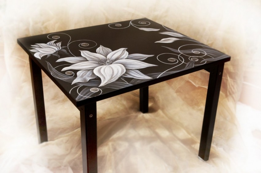 - роспись стола при помощи трафарета (через тканевый, бумажный или пластиковый трафарет);