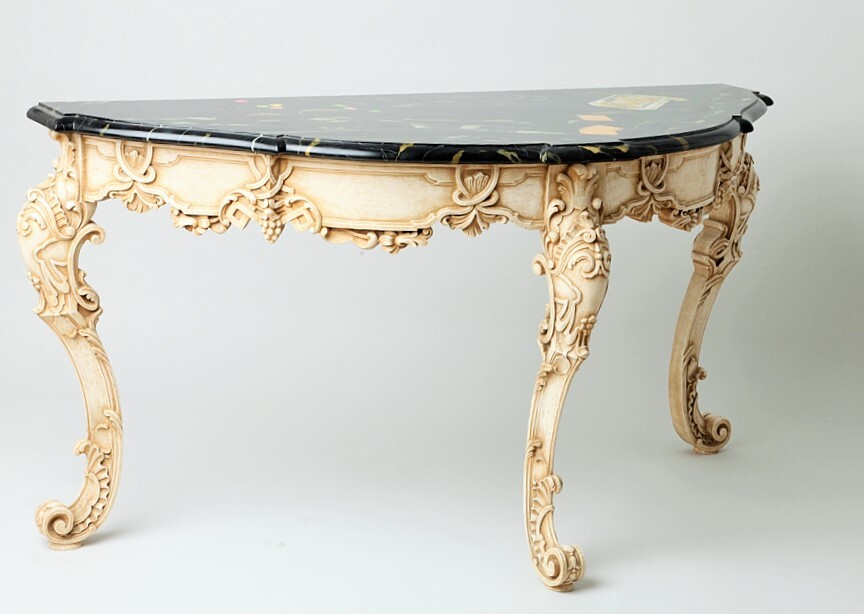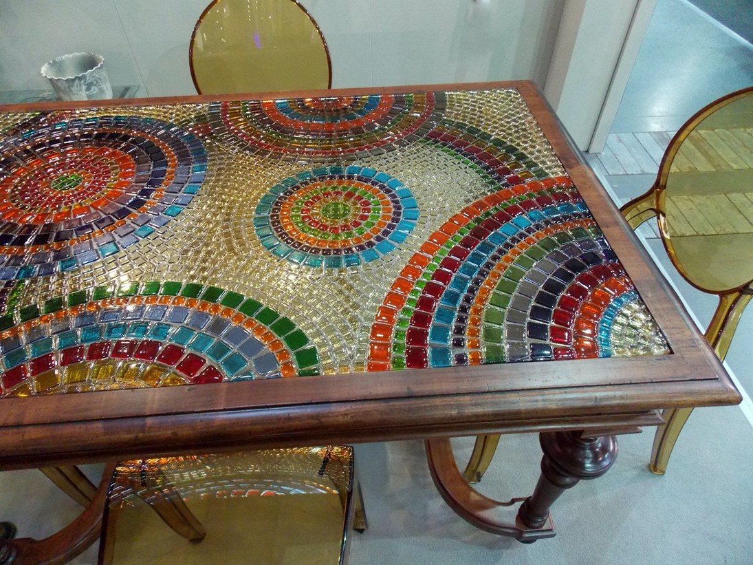 Рисунок на столешницы можно также создать при помощи мозаики или потали. Последняя используется в работе, когда целью является имитация одного из благородных металлов — золота, серебра или бронзы.
