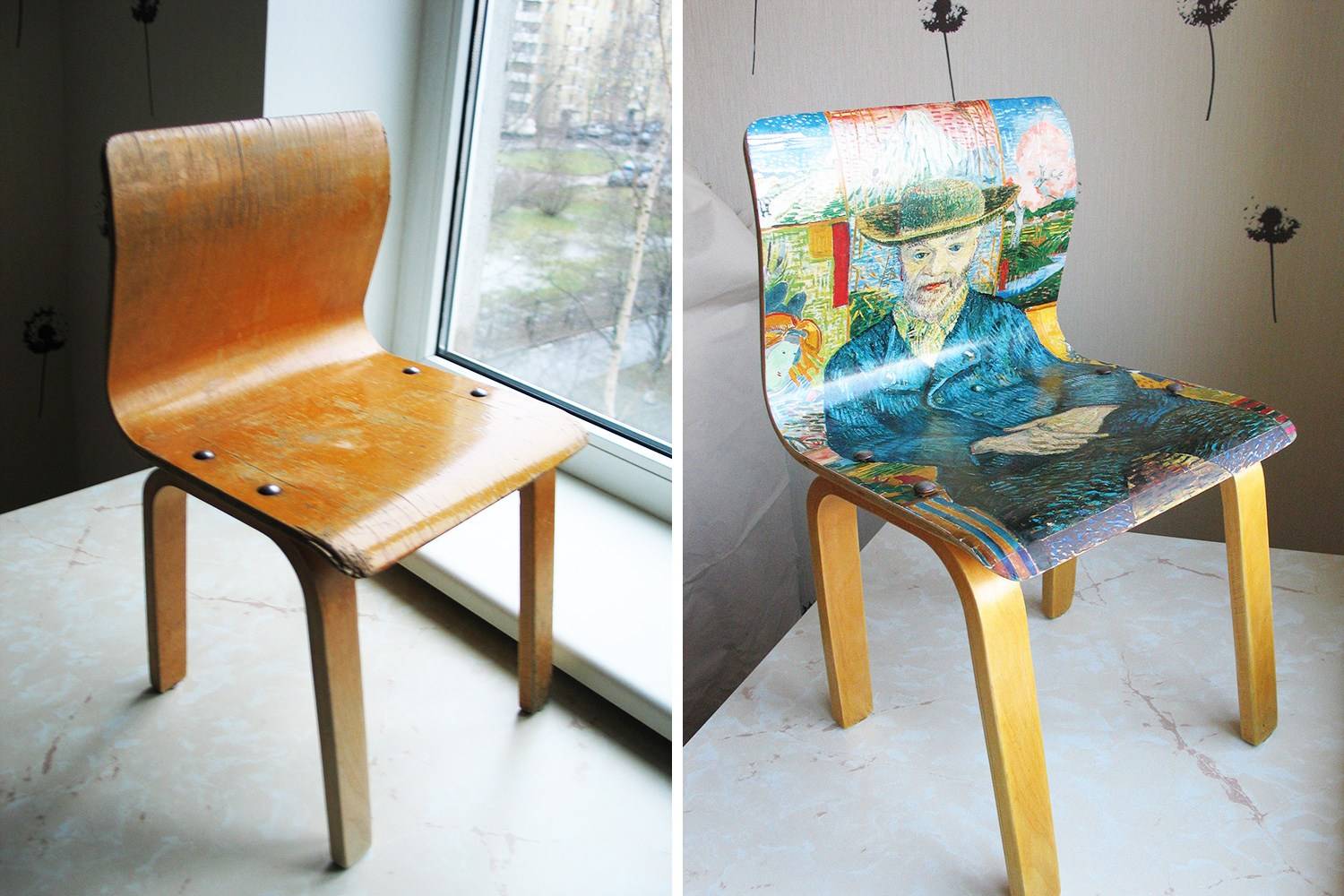 Как обновить стулья в технике декупаж: