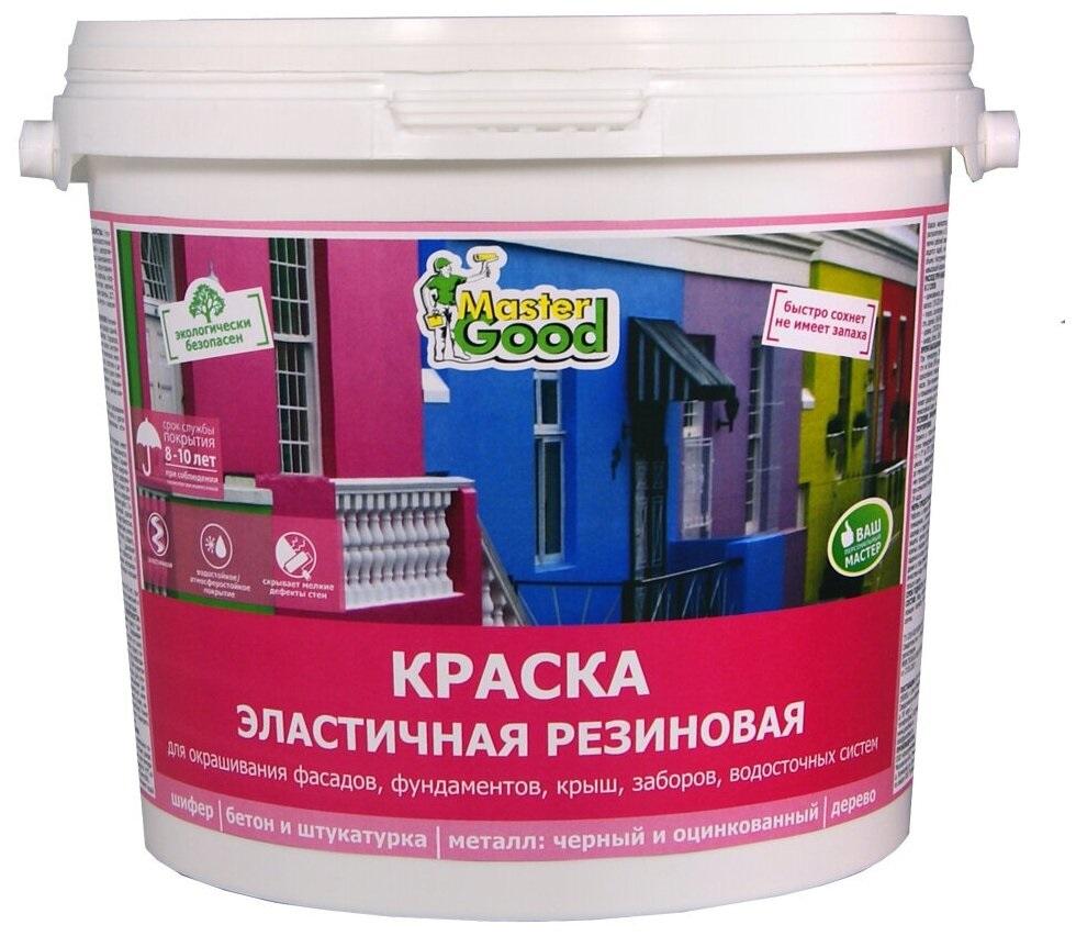 - «MasterGood». Еще одна краска российского производителя. Благодаря высокой эластичности ею можно заделывать неровности и небольшие трещины на поверхности. Время высыхания слоя составляет 1–4 часа при нанесении внутри помещения. Срок службы – 8–10 лет.