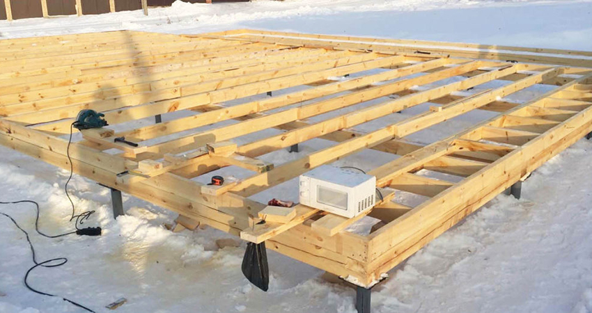 Чаще всего при возведении свайно-ростверкового фундамента выбирается вариант, при котором сваи устанавливают на глубину 2 м при шаге 3 м, при этом ростверк должен уйти на глубину 20 м. Конструкцию ростверка можно использовать для изготовления подпола на песчаной подушке или стяжке. Таким образом, можно отказаться от выполнения гидроизоляции.