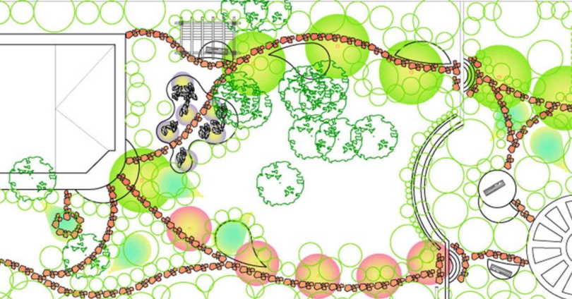 Для правильного составления плана, нужно пользоваться схемой участка, на котором отмечены все постройки, деревья, кустарники, ограждения и так далее. На таком листе проще будет распределить желаемые дорожки.