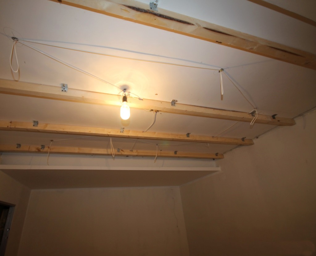 - При необходимости прокладываем вентиляционные короба и проводку к местам установки светильников.