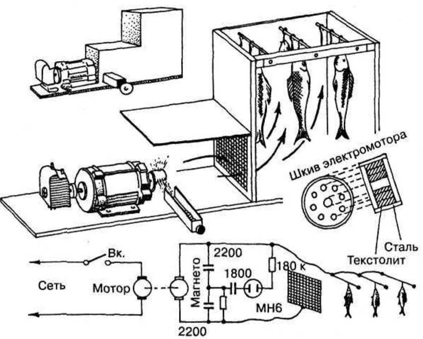 Если же вы хотите сделать гриль, то вам потребуется коптильня для горячего копчения и механизм, вращающий находящийся в ней продукт.