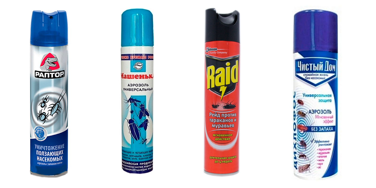 Аэрозоли – не менее популярные средства, отличающиеся быстрым эффектом. Их используют при незначительном количестве вредителей. Результат распыления инсектицидного раствора в местах скопления насекомых можно наблюдать по истечении 2-3 часов. Трудоемкий процесс обработки, наличие специфического запаха, высокая стоимость, а также необходимость в эвакуации проживающих в квартире людей являются главными недостатками аэрозольных препаратов. И все равно большой популярностью у потребителей пользуются спреи: