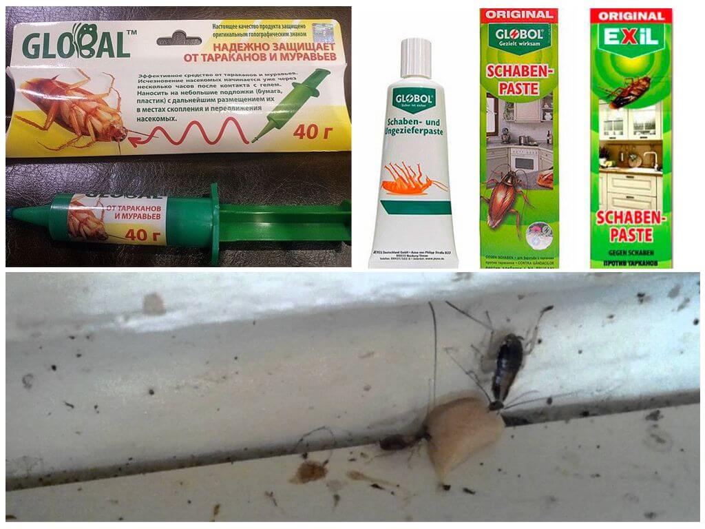 - паста Exil (старое название Глобол) — содержит хлорпирифос, преимуществом которого является неспособность вызывать привыкание у вредителей, не токсично, действует длительно, стоимость в пределах 300 руб.