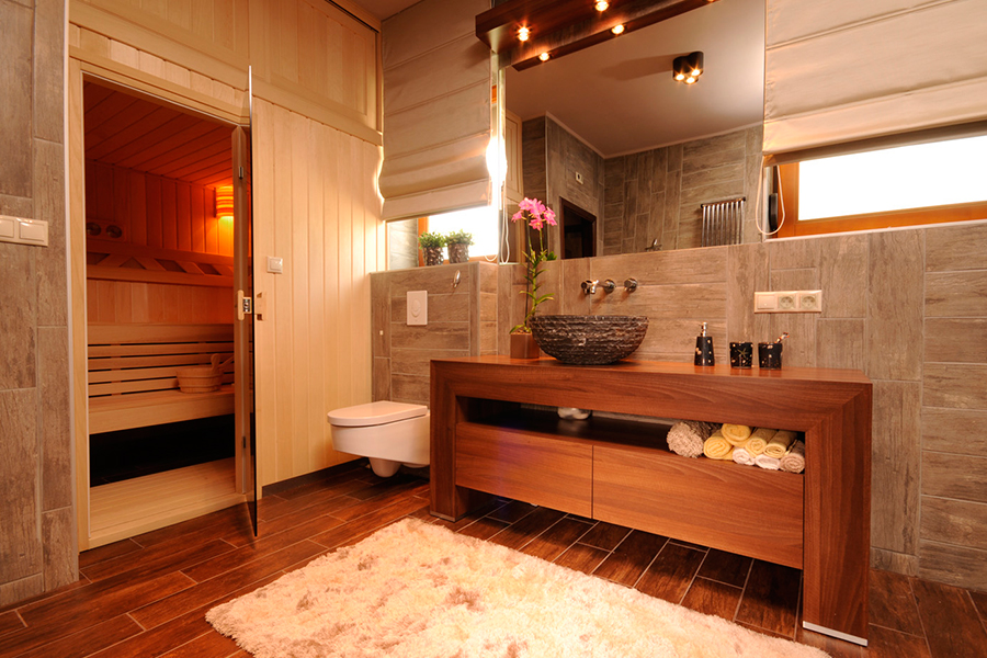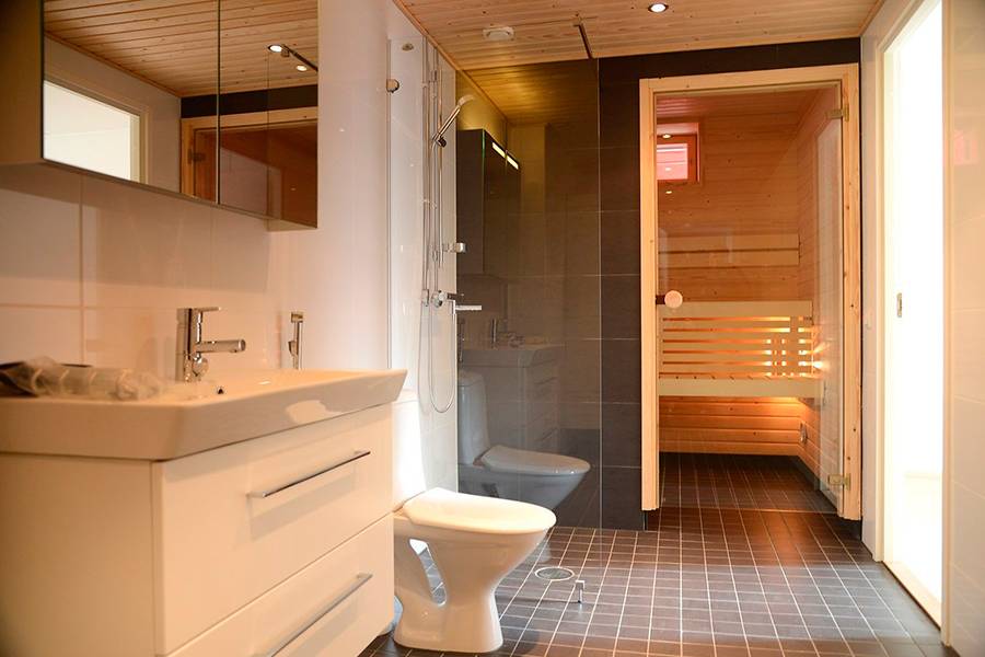 Проще всего разместить сауну в ванной комнате. Допускается использование помещений, которые к ней прилегают, чтобы можно было сразу же принять водные процедуры, охладить тело, смыть пот. Совместив помещения ванной и туалета, можно освободить немного места для установки сауны.