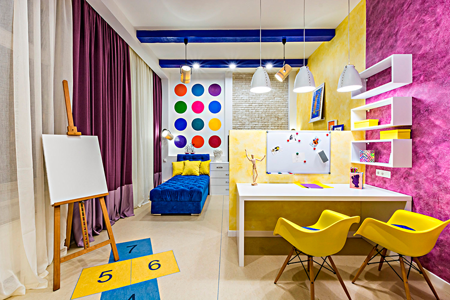 Тот же рисунок и текстура, но в сочных, жизнерадостных цветах создают энергичное, веселое настроение в детской комнате. Впрочем, если ваш ребенок гиперактивен, то для него больше подойдут спокойные пастельные оттенки, и оформление в винтажном или классическом английском стиле.