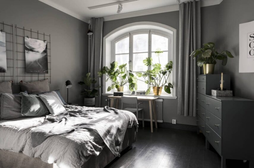 Только на первый взгляд светло и темно серый кажутся одинаковыми. Несмотря на похожесть, в комнате они будут выглядеть по-разному. Темные оттенки визуально уменьшат помещение, тогда как светло-серый добавит воздуха и уюта