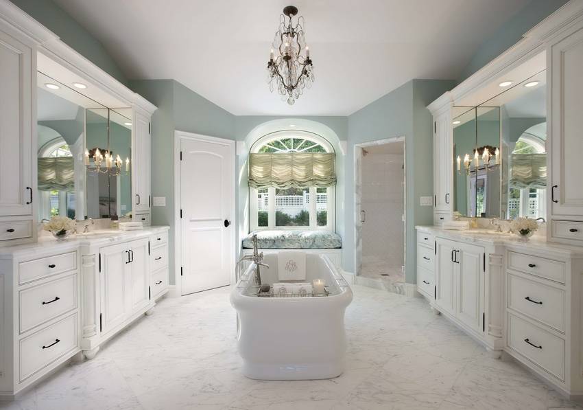 - отдать предпочтение белому потолку и сантехники;