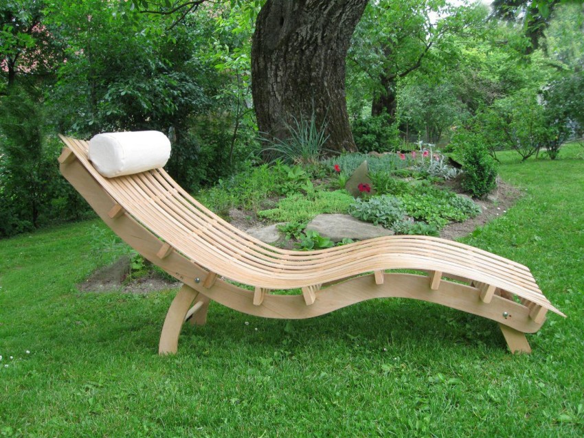 Применяя фанеру, можно соорудить шезлонг необычной формы