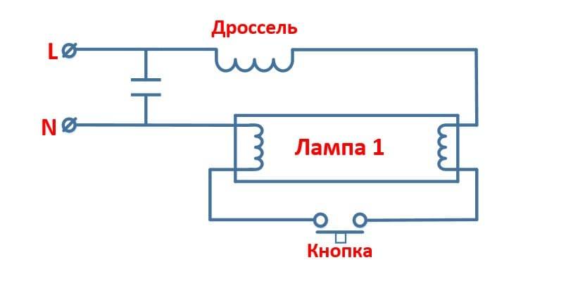 Схема последовательного подключения двух люминесцентных ламп от одного дросселя
