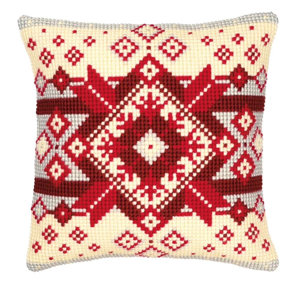 Если вы только пробуете свои силы в вышивке, и пока не видите разницы между полукрестом и болгарским крестом, например, не беритесь за сложные схемы. Если все же хотите вышить именно подушку, попробуйте схемы с монохромным орнаментом. Это может быть прямоугольный фрагмент, который вы потом просто пришьете на чехол. Например, белая подушка с красным орнаментом – это классический вариант. Очень часто такие подушки вышивают к Новому году.