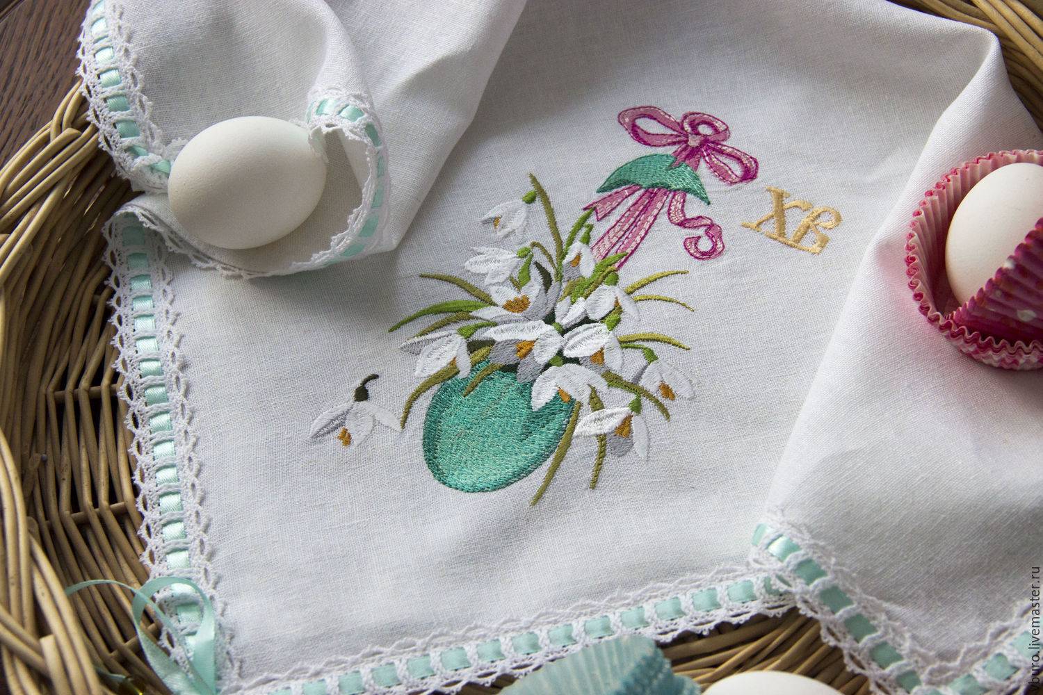 Традиционно к главному христианскому празднику вышивали рушники. В каждом доме накрывали богатый стол. Его покрывали вышитой скатертью, неприхотливыми рисунками и орнаментами украшали салфетки, которыми закрывали пасхальные корзины с яйцами.