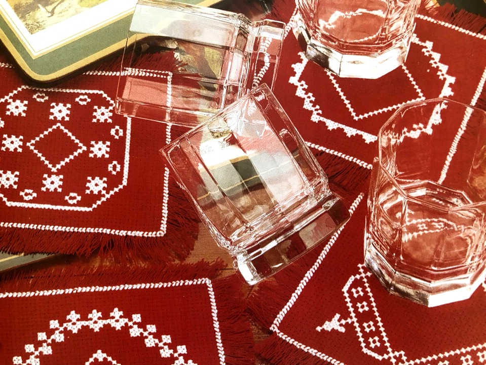 Для каждой салфетки потребуется 15 х 15 см красного полотна «Аида» с 44 квадратами в 10 см и один моток хлопчатобумажных ниток Перле № 5 белого цвета.