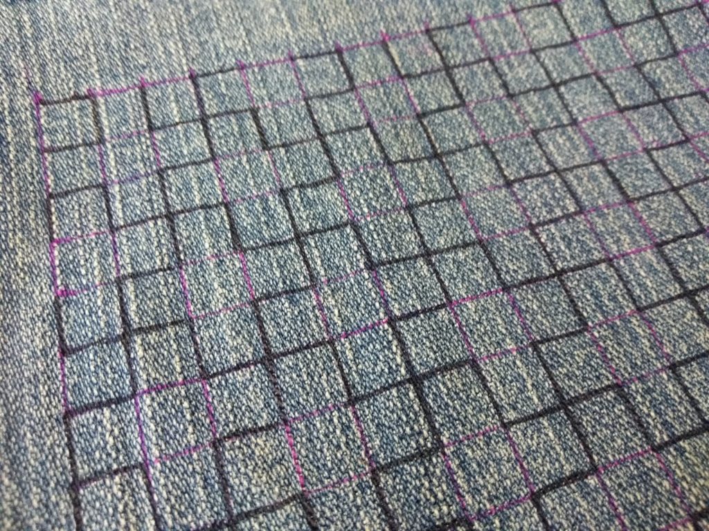 Четвертый этап — создание стежков в технике сашико. Стежки выполняются самым простым способом – швом вперед иголкой. Но это просто только на первый взгляд. Каждый стежок прокладывается абсолютно одинаково, сохраняя равномерное расстояние.